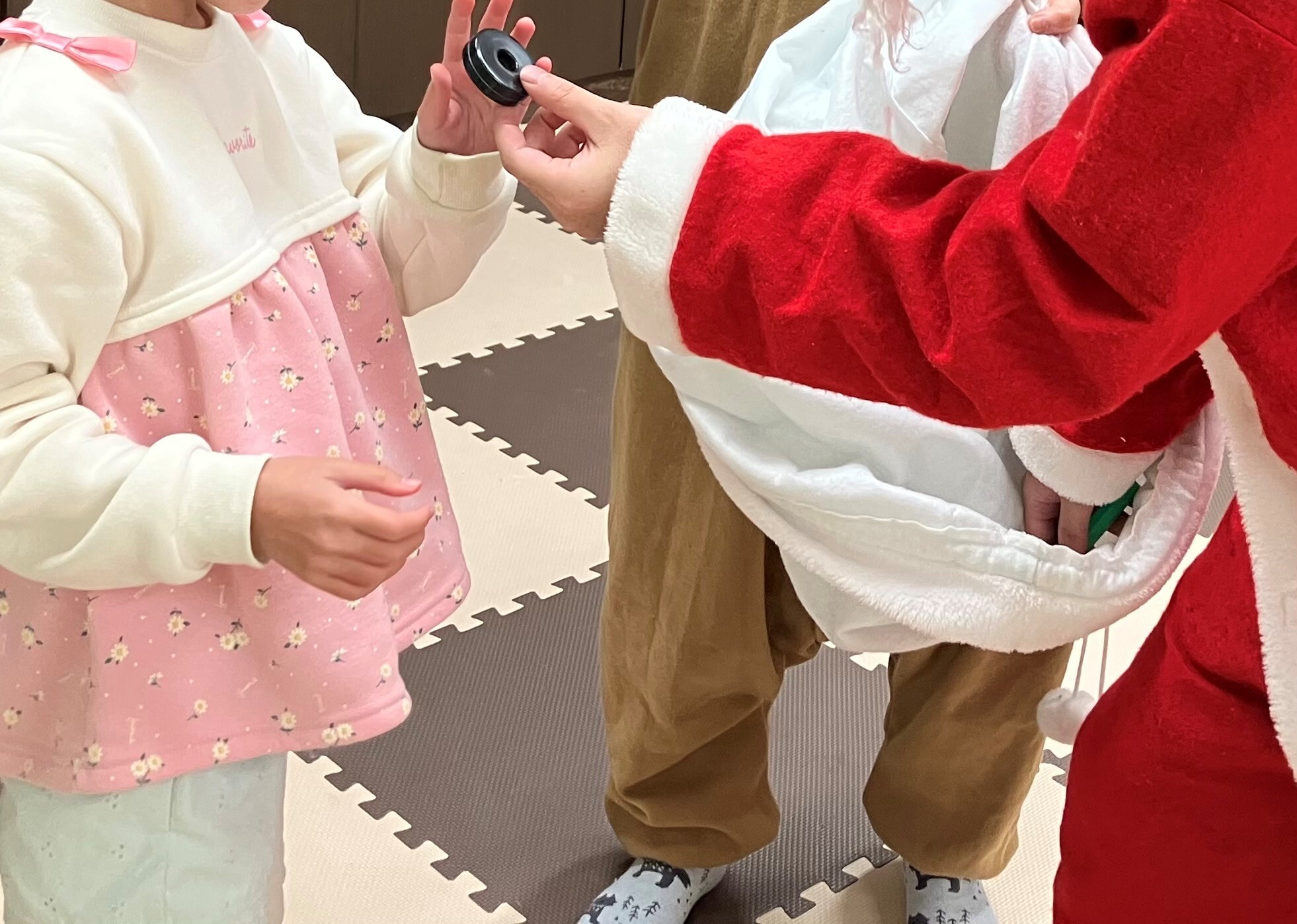 完成したパフェを食べ終わった後は、サンタさんとトナカイさんがプレゼントを持ってきてくれました。